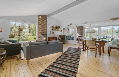 after a peaceful night's sleep in your vacation home on the west coast of zealand, you can look forward to an eventful day Start the morning with a leisurely breakfast at the dining table in the living room before retiring to the sofa area to play board games or read. Here you can also enjoy the view of the extensive garden and light the fireplace in the evening to create a cozy atmosphere. When the weather is fine, you can also dine outside under the parasol. The garden is also ideal for a small soccer tournament or other fun ball games.