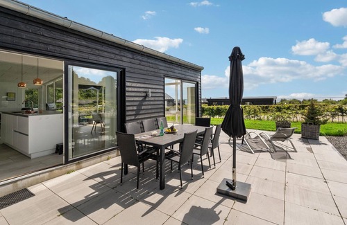 welcome to the bright and inviting cottage near the water Start your vacation morning with a cup of steaming coffee on the terrace, where you can also enjoy your breakfast while planning the day's activities. The house exudes quality and well-being, and care has even been taken to keep energy consumption as low as possible. The large kitchen is open to the living room and quickly becomes the meeting place of the family. From here you have a view of the Little Belt through the large windows, which also provide a nice light. Many entertaining hours await you in the activity room, including table soccer. After an active day in the fresh air, a relaxing bath in the large bathroom, which also features a double shower, is a delight. Or how about a relaxing walk in the barrel sauna on the terrace? If you were lucky on your fishing trip, you can clean your catch in the outdoor kitchen and gather for a delicious barbecue in the evening.