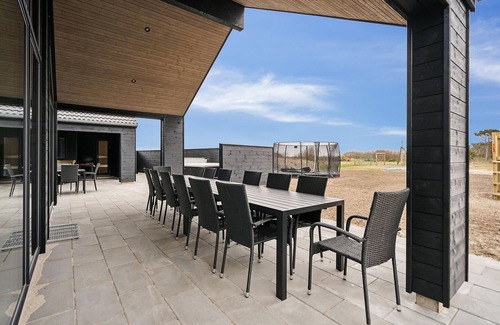 close to bjerregaard harbor and close to hvide sande, this beautiful vacation home for a large family or several families of friends is situated on a large natural plot with plenty of space for a good game of soccer or a game of wickerman's chess The bright house promises you comfort in the beautiful living area, entertainment in the activity room and fun in the swimming pool with slide. The wellness program is not neglected either, because while the house also has a sauna, you can relax in the whirlpool on the terrace. Spend your time outdoors according to your taste and relax on the sun loungers, fire up the barbecue or play on the lawn.