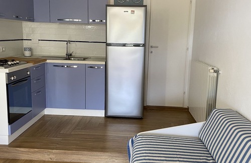 the apartment is part of a family house which is located in the center of the town, a few minutes walk from the main square, shops and services and the sea (350 / 400m)