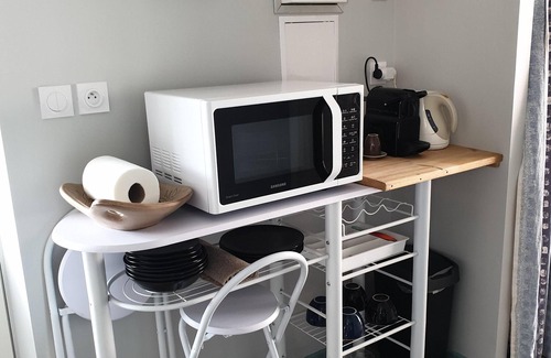 the studio for 2 non-smoking travelers, has been completely renovated this year All equipment is new: ceramic hob 2 burners, fridge / freezer, multifunction oven, Nespresso coffee machine, electric kettle, electric heating, sofa bed system Rapido. Our animal friends are not accepted. Presence of domestic animals in the garden: 2 cats in freedom, very discreet with the visitors..