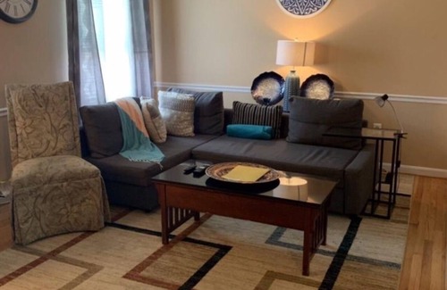 Welcome to our spacious 4-bedroom, 4.5-bathroom townhouse! Located 10-20 minutes away from Washington DC, National Harbor, and Arlington, our home offers convenience and comfort. Situated right in front of a park, it's perfect for families with kids. During your stay, you'll have access to the entire house, ensuring a comfortable and private experience. In our townhouse, we offer 4 queen beds and 1 twin bed. The unit has high-speed WiFi, a smart TV, and a full-size washer/dryer. In the kitchen, you’ll find a Keurig Latte & Cappuccino Coffee Machine, a milk frother, creamer, sugar, and other basic kitchen necessities. Dish and laundry soap are provided, as are shampoo, soap, a blow dryer, clean towels, and bed linens. There are grocery stores, many restaurants, and services nearby. You have one spot on the driveway and a spot in the garage to park in, there is also free street parking. Additionally, you can enjoy the convenience of a small backyard, perfect for outdoor relaxation. Book now for a delightful stay!.