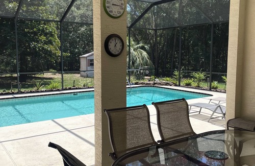 Escape to this superb house in Lecanto. This cozy retreat features 2 bedrooms with a king and queen bed, perfect for a relaxing getaway. Enjoy the convenience of 2 bathrooms, one with a luxurious jetted bathtub. With amenities like WiFi, AC, and a washing machine, guests will feel right at home. Relax at the private pool surrounded by lush greenery, creating an oasis of calm. Meet up at the end of the day to share a meal in the lanai and create unforgettable memories with loved ones! Feel free to reach out to us during your stay - we're happy to suggest local spots to check out..