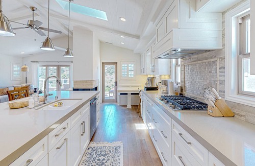 perched directly above the monarch beach golf link, you will get to admire breathtaking views of the golf course (17th green), the ocean, and catalina island on clear days This immaculate and completely remodeled home away from home boasts a beautifully decorated open floor plan with skylights, plenty of natural light, and wood flooring throughout. Spend tranquil days chilling in the living area, which boasts a double-sided gas fireplace, welcoming seating, and a huge smart TV with streaming services. Attached to the living area is a private balcony facing the backyard and offering impeccable views of the golf course. There is an inviting seating area along with a gas grill table. Back inside, the well-appointed chef's kitchen has all the essentials to prepare exquisite culinary masterpieces, including two coffee makers. Adjacent to the dining area is a convenient dry bar with a wine fridge and a mini-fridge.