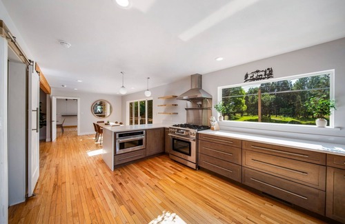 there’s also a well-stocked local market and wine/liquor shop less than 10 minutes away, perfect for grabbing steaks, snacks, or your favorite bottle of wine Grill outdoors on the spacious deck while the kids play yard games or relax by the pond and patio. Depending on the season, guests can enjoy horseback riding or sleigh rides at nearby ranches.