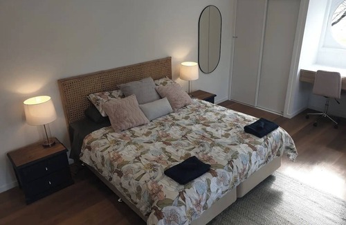 walking into our home, you'll find a powder room on the left, followed by a staircase upstairs The corridor ends in an open-plan lounge, kitchen and dining area. The kitchen has a walk in pantry with an automated coffee machine, kettle and toaster. We have a fully functional laundry with washing machine and dryer. Upstairs you will find four bedrooms - the master room is particularly spacious and opens onto the balcony and includes ensuite. Upstairs includes a second living area (the kids tv area!!), family bathroom, separate toilet and a 3rd and 4th bedroom which each include two bunk beds (for eight guests). We have a bbq on the lower patio and a simple outdoor table and chairs. The upstairs patio is not suitable for young children. Please ensure you keep doors locked.