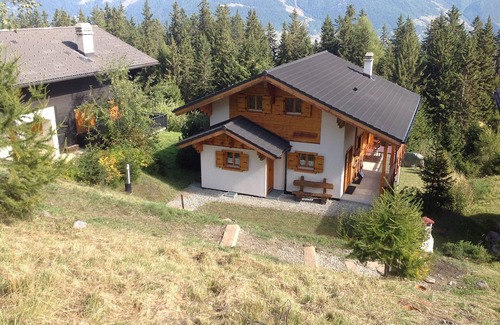 A modern, self catering Chalet on the Alpage de Thyon. At 1900m altitude, it is usually ski-in ski-out from property boundaries in good snow conditions. East facing with superb views to North, East and South, overlooking quiet woodland area with cross-country ski trail. Excellent local ski area, with nearest piste and lift (a high speed quad chair) only 400m away, that links to the Verbier/4 Vallée ski area.
