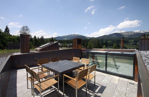 Luxurious 240sqm duplex apartment with 4 bedrooms (available for a max. of 8 persons), each one with ensuite bathroom. The apartment is located in the main building of THE MOUNTAIN SUITES on the sixth and seventh floor, and offers extraordinary views over the mountain landscape of Flims and the region.