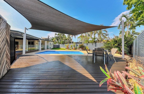 welcome to our glorious holiday home located in the central darwin suburb of parap! this home boasts space, comfort and relaxation, with open plan living and a huge entertainment and outdoor pool area The home is just a short walk away from Darwin's biggest attractions, including the racecourse and silks club, the ocean, markets, boutiques, restaurants, cafes and ski club. this giant home has a built-in bar, swimming pool and a full size pool table, perfect for your entertaining needs!