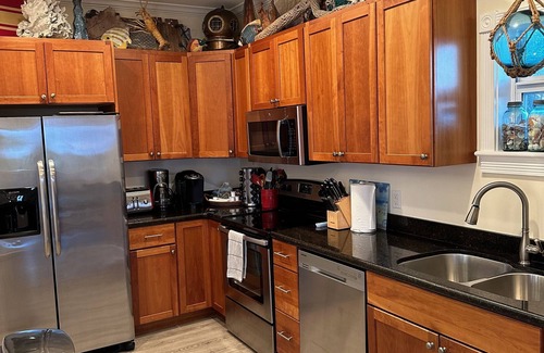 we provide bikes, kayaks, a corn hole game, folding beach chairs, a beach umbrella, beach toys and towels, bocce ball, and a cooler for your enjoyment We are always adding extra "toys" and oftentimes have a clear see-through kayak and stand up paddle boards available as well. Relax on our hammock or on our swing overlooking the beach. The bikes are available for you to enjoy a leisurely bike ride down the scenic tree lined bike path, accessible directly across the street from Sunrise Beach, which traverses Cudjoe Key and continues all the way to Key West. Cudjoe Bay is the perfect calm place to kayak and enjoy the clear water. there is something for those who want to relax and enjoy the views and as well as for those who wish to explore all the keys have to offer!