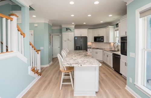 A truly unique beach front home! This vacation paradise features four spacious bedrooms, each with fantastic ocean front views. Three of the bedrooms have their own ensuite bathrooms and walk-in closets. Two of the rooms are equipped with King beds, the other 2 have Queens, with the fourth bedroom having additional twin bunks. The home boasts a beautifully updated kitchen with all the amenities you need to accommodate in-house meal prep and cooking. However, if you don't feel like cooking, you're also in luck with the convenience of having multiple local restaurants within a 2–5-minute drive.