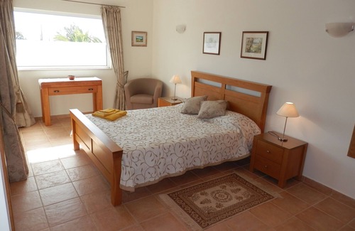 Set in a typical eastern Algarve village this spectacular large modern villa is equipped and furnished to high standards throughout. All rooms are very spacious and the house easily accommodates 10 adults. The impressive large and spacious lounge overlooks the south facing garden and open countryside, offering dramatic views of both sea and mountains from the garden and also from the very large roof terrace. There are large open spaces outside, including BBQ area, outside shower, very large patio with terrace furniture, large table and chairs for al fresco dining and sun loungers to ensure your stay has every comfort. The large garden, with its established trees, terraces and 8m fresh water pool (with pool fence) provides your personal oasis, as long as you can resist the fantastic nearby family-friendly beaches of which some of the finest include Monte Gordo, Praia Verde, Altura, Manta Rota, Cacela Velha, Fabrica, Cabanas and Tavira - all just a few minutes drive from the villa! The ancient town & regional centre of Tavira is approx 10 mins away. You can also drive to Spain in 20 minutes or why not take the passenger ferry boat from Vila Real de Santo Antonio to the Spanish town of Ayamonte!.