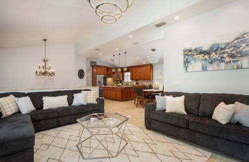 with 5 spacious bedrooms, 3 full bathrooms, two kitchens and two separate living rooms, this beautiful, spacious, luxury home is perfect for family gatherings and relaxing vacations with friends