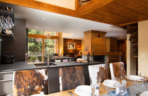 the fully equipped kitchen includes a state-of-the-art miele coffee machine, qooker tap, bora hob, microwave and wine cooler A large log fire opens on two sides into the dining and sitting areas. The living space is fitted with top of the range SONOS speakers and BOSE speakers and TVs in every bedroom. A large south facing balcony adjacent to the sitting area captures afternoon sun.