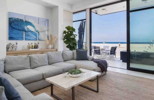 Beach front, 5 bedroom, new home on the world famous Strand (boardwalk) of Hermosa Beach, CA. Amazing sunsets every night from the ocean front patio. Beautifully furnished inside and out with patio al fresco dining, chairs, U lounger & fire pit. Ultimate in people watching. Roof top deck with private sun-bed, hot tub, grill & fireplace. A short stroll to the Hermosa Beach Pier & lively nightlife. Festivals and tournaments every weekend. The most luxurious rental in all of Manhattan and Hermosa Beach!.