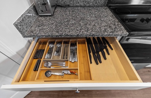 fully equipped kitchen: cook up a storm in the modern kitchen, complete with whirlpool appliances, a ninja air fryer, and a coffee maker to fuel your mornings