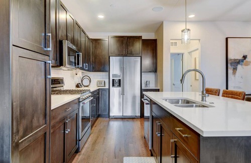 spanning over 2,000 square feet, this spacious chalet features four beautifully appointed bedrooms, including a master king suite and three additional rooms with queen beds and a full-over-full bunk bed, accommodating up to 10 guests With 3.5 bathrooms, everyone will have ample space to unwind after a day of exploring the great outdoors.