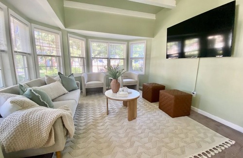 Grand Haven offers a professionally designed luxury retreat and mid century modern charm. Designed for long term stays, its central location is a short walk to the metro, large parks & downtown Vienna. The home is fully equipped as your comfortable home away from home. Work from home in the dedicated office. Cook with high end appliances. Enjoy the magical private yard from the outdoor swing or fire pit. Workout on the Peloton before a family competition on the Nintendo Switch or the arcade.