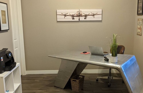 This beautiful private home located in a premier neighborhood within the coveted lake community of The Islands awaits you! Over 1,700 square feet of resort style living with 3 spacious bedrooms, 2 full bathrooms, an office/den, and other dedicated workspaces. Cook to your heart's delight in a fully stocked gourmet kitchen and start each morning with a cup of coffee from the Ninja coffee maker. Guests will enjoy use of basic cable tv and high-speed internet for streaming from all of your favorite apps. Excellent location. Great neighbors. Treat yourself to luxury in a great location with great neighbors and a private park exclusively for residents that is across the street. The pièce de résistance is a 16 foot wall of glass that can be opened to create a relaxing indoor/outdoor experience. All of this just a stones throw from the happening historic downtown Gilbert district. At this time, access to the garage is prohibited and although the backyard is not yet finished, there is a small covered patio with furniture and a gas BBQ grill. what are you waiting for, book your stay now!!