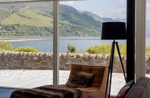 With stunning south facing views over the iconic Eilean Donan Castle, the Five Sisters of Kintail mountain range and situated right in front of the sea this is a recently renovated luxury house ideally placed to explore the Isle of Skye (15 min drive), Plockton (15 min drive), and many other stunning locations in the Scottish Highlands.