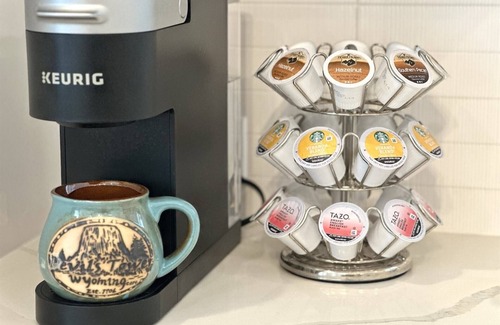 elegant dining room with seating for your family or friends The chef’s kitchen is stocked with top-of-the-line appliances, cookware, and coffee to kickstart your mornings.