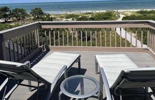 Modern luxury beachfront villa at Ocean Edge Resort on Cape Cod. Property has panoramic ocean & beach views (Brewster flats) with direct access to the beach, pool and tennis courts. Recently went through a high-end modern renovation..