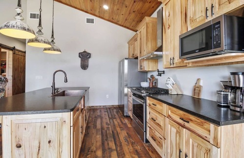 Take it easy at this unique and tranquil getaway! This cabin is located on over 160 acres w/ miles of private trails and abundant wildlife! The floors/trim of the home were made from reclaimed wood from an old amish barn nearby! The property is surrounded by many Amish/Mennonite families so it is quite unique to see a horse-drawn carriage on the roadways. this cabin is located far enough out to have peace & quiet but still only 15 minutes to the city(wal-mart, coffee, restaurants, etc)