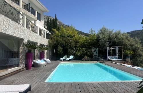 at 10mns from monaco with an amazing view on the sea you will enjoy the inside and outside swimming pool and jacuzzi