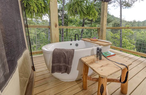 Luxury Tree Tent in Tuxedo Falls Resort with Private Waterfalls & Hiking is located in Zirconia. Luxury Tree Tent in Tuxedo Falls Resort with Private Waterfalls & Hiking provides accommodation, featuring Bedding/Linens, Barbecue/Outdoor Cooking, Internet, among other amenities. This Cabin features Bedding/Linens, Barbecue/Outdoor Cooking, Internet, to make your stay a comfortable one.
