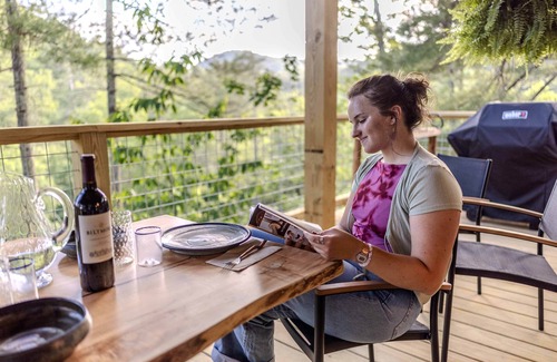 Luxury Tree Tent in Tuxedo Falls Resort with Private Waterfalls & Hiking is located in Zirconia. Luxury Tree Tent in Tuxedo Falls Resort with Private Waterfalls & Hiking provides accommodation, featuring Parking, Balcony/Terrace, Sports/Activities, among other amenities. This Cabin features Parking, Balcony/Terrace, Sports/Activities, to make your stay a comfortable one.