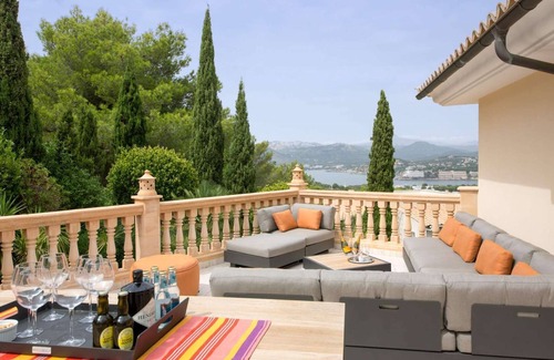 Luxury villa, views of Santa Ponsa Bay, heated pool and fully airconditioned is located in Santa Ponsa. Luxury villa, views of Santa Ponsa Bay, heated pool and fully airconditioned provides accommodation, featuring Fireplace/Heating, Barbecue/Outdoor Cooking, Kitchen, among other amenities. This Villa features Fireplace/Heating, Barbecue/Outdoor Cooking, Kitchen, to make your stay a comfortable one.