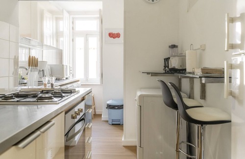 The LV Premier Baixa CN1 is a bright apartment in the city center. It features a long balcony on both sides of the apartment with views of the city: Sé, Alfama, Baixa, Praça do Comércio, Santa Justa Elevator, and river views. Equipped with bed linens, towels, and premium hygiene items. Fully equipped kitchen. Air conditioning / heating. The elevator starts 1 level above street level. Minutes away from restaurants, shops, and attractions. Property completely cleaned and disinfected.The LV Premier Baixa CN1 apartment is a bright 3-bedroom / 2-bathroom apartment located in the heart of Baixa, on the fifth floor of a building with an elevator. It features west and south-facing balconies with views of the Tagus River, the majestic Praça do Comércio, Lisbon's main Sé Cathedral, Santa Justa Elevator and many other attractions. In addition to the bedrooms, bathrooms and living room, there is a separate dining room and a fully equipped kitchen. All bedrooms and living room have access to the balcony. The apartment is equipped with air conditioning and electric heating and double-glazed windows. With an excellent location in the flattest area of the city, with easy access to all services, restaurants, attractions, theaters and shops, CN1 is very popular. You can reach the lively Bairro Alto, Alfama and the city's famous castle with a short walk. It has capacity for 7 people in the bedrooms and 2 additional guests on the sofa bed. For your comfort, we have first-quality bed linens and towels, as well as design hygiene items.Note: the elevator starts 1 level above the street accessible by stairs. Check-in between 10 PM and 8 AM - supplement of 60 euros. Stays longer than 9 nights include weekly cleaning. Wi-Fi 500Mb. 8958/AL.