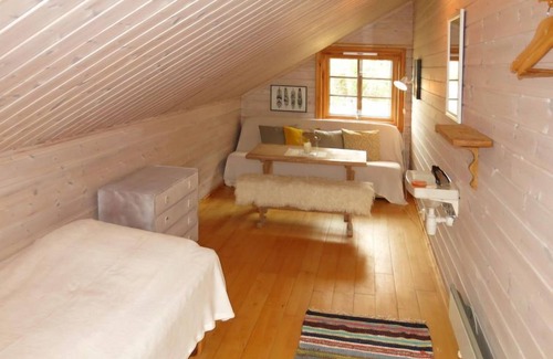 Målsnes 10 km from Balestrand: Beautiful timber house "Målsnes", 41 m a.s.l.. In a hamlet 10 km from the centre of Balestrand, 36 km from the centre of Høyanger, 57 km from the centre of Sogndal, on a slope, 300 m from the sea. For shared use: property with meadow, orchard, parking on the premises. Supermarket 10 km, railway station "Voss" 104 km, ferry "Bergen" 198 km, sandy beach 10 km (small). Fishing possibilities 300 m. Please note: the owner lives on the same property.