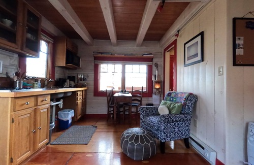 Mökki is the perfect mix of cozy log cabin and hip downtown life. This charming abode is located along a quiet street - just a block away from main street. It is within a short walk of Grand Marais' restaurants, pubs, shops, sailboat harbor, North House folk school, the Art Colony and so much more.