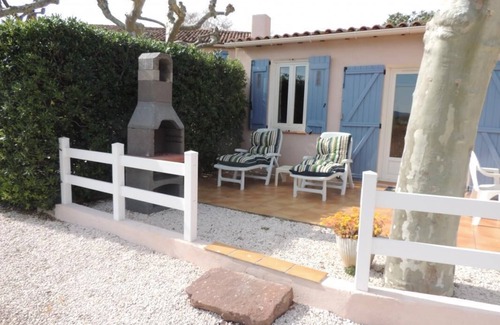 Small single-family house on a vineyard of 3ha near the owner and another gite, shaded terrace with garden furniture and barbecue, private parking. Walks in the Massif des Maures. Ground floor: living room kitchen equipped with corner TV lounge and 2 armchairs, a bedroom with a double bed, bathroom with wc cloisonne. Electric heating. ANY OVERFLOW WILL BE ACCEPTED..
