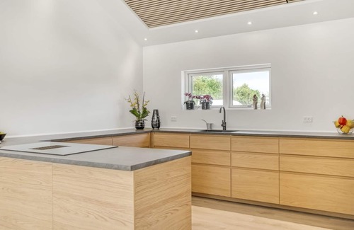 Single-family house, built in 2025. 700 m from the sea. Private: natural state property 2'323 m2. Outdoor shower, barbecue. In the house: washing machine, tumble dryer. Parking at the house. E-charging station. Grocery 6.2 km. Golf course 8.1 km. The owner does not accept any youth groups.