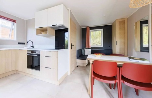 details: disabled access wi-fi access : free on the entire campsite playground for children : (swinging, trampoline..) Deposit (in supplement) Baby chair : 14€/week - upon reservation and subject to availability - to be paid on site Deposit of bread : cooked on site and delivered to location Laundromat : see on-site rate and settlement Bedding : 13€ / bed - upon reservation and subject to availability - to be paid on site Crib : 38.50€/week - upon reservation and subject to availability - to be paid on site Final cleaning : see on-site rate and settlement Number of stars : 3 Car park : Only 1 vehicle authorized per rental, no extra charge possible. (Moto and small trailer tolerated) bowling Ping Pong Swimming pool : outdoor heated - open from 01/06 to 15/09 according to weather conditions (at opening hours to be consulted on site) Snack bar : opened from 01/07 to 30/08 Tourist tax (surcharge) : see on-site regulations and tariffs Environmental display Charging station for electric cars : piloted via the chargingplus app - see rate and on-site regulation Pets Allowed : 24.50€/rental - only 1 animal / dwelling - categories 1 and 2 prohibited - to be settled on the spot coffee maker deposit (in euros) : 340 oven microwave oven number of bedrooms : 2 number of pieces : 3 number of toilets : 1 number of bathroom : 1 cooking plate fridge garden lounge surface (m²) : 30 television terrace dishes and cutlery new