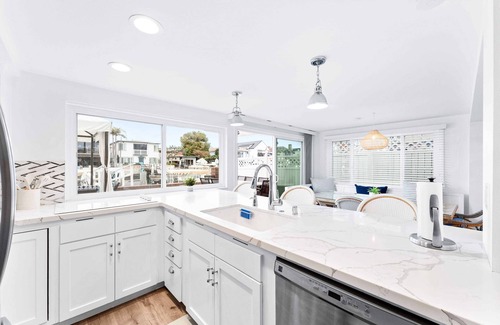handpicked with the guest in mind, this bayfront home is a short 2 block walk to the ocean where you can catch epic sunsets You can also rent bikes and cruise down the boardwalk and take the ferry to Balboa Island. so much to see and do!