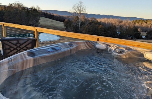 Staying in our luxury yurt you transcend the stress of day-to-day life, feel more connection with nature all without sacrificing the comforts you love. Cook in our beautiful kitchen, relax surrounded by poplar lattice architecture. Nap under the blue sky and sunshine coming through the dome compression ring. At night have a fire or soak in the hot tub spa. Listen to the sounds of the near by brook. In the morning drink your coffee gazing out over the Shenandoah Valley as birds and butterflies flutter within the 5 acre property and pond.