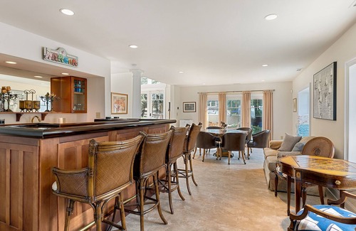 This luxurious and sun-filled 5-bedroom, 4.5-bath bay front home on the beach offers the epitome in private vacation living. It features stunning water views from all three levels, including the ground floor patio and private sand dune, the main floor's full-width deck and the third floor's balcony.