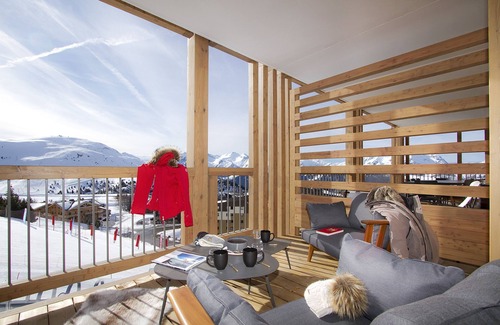 • balcony: table, chairs, coffee table, south-facing, view on the pistes, 20m²