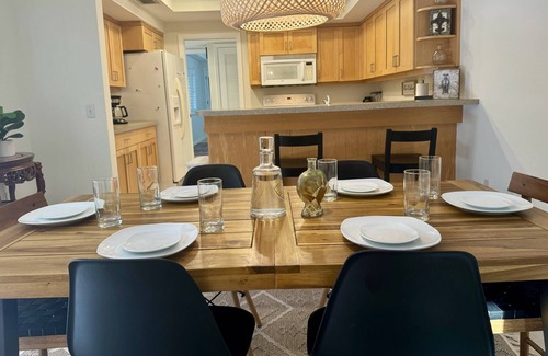 outside, you’ll discover a private outdoor dining and a lanai area to enjoy the great outdoors that invites you to relax and unwind Take a dip in the sparkling community pool, bask in the sunshine on the expansive patio, or enjoy alfresco dining under the covered lanai. This is a pet-friendly property and small dogs are permitted with property manager approval and $20 per night fee. Six nights or more $125 fee. Please notify us prior to arrival if you are bringing your dog.