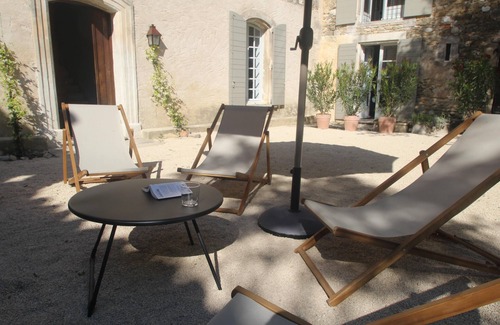 the guillaume rey is a true provencale bastide with a closed courtyard, a well and mediteranean vegetation Actually surrounded by vineyards, olive trees and truffle oaktrees, you will walk 150 meters towards the swimming pool, a 6m by 12m pool in the middle of a large lawn with trees; you share it with the other guests of the Guillaume Rey and eventually with the owners when in Oppède.