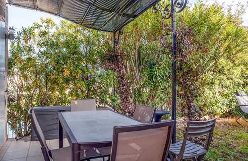 this tastefully furnished holiday home offers golfers and those seeking peace and quiet a stylish home in a well-kept and secure resort to enjoy sunny days in the heart of provence Conjure up culinary highlights in the open-plan kitchen and dine with a view of the greenery. After a long day, the lovingly designed living room invites you to spend harmonious hours reading a good book or playing a board game.