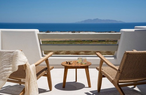 Platies Luxury Apartment is nestled in a tranquil corner of Exo Gonia’s countryside, just a 5-minute drive from the iconic black-sand beach of Kamari. Surrounded by lush vineyards, the property offers sweeping views of the endless blue Aegean Sea.