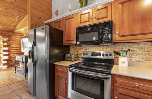 game room/theater is separated from the main house and includes a bunk room that sleeps 4, and a futon that could accommodate more The separate cottage ensures that the night owls wanting to stay up late and play don't disturb the early to bed crowd. Large Smart HDTV as well as ping pong table round out this large space made to entertain. Kitchenette with sink, refrigerator, and plenty of space helps make this a perfect hang out spot for all. Cottage includes a full bath with shower to help accommodate all of your guests. After Oct 31 the cottage will be winterized and no water will be available. A kerosene monitor heater is available to heat the space when occupied.