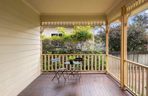 a sunny rear verandah that overlooks the lush garden—ideal for reading, outdoor dining, or simply relaxing under the mango tree