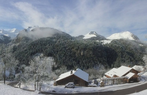 Chalet L'Homme de la Lune is a traditional and tranquil chalet with magnificent views across the Aravis range. It’s the ideal location for your next mountain holiday, enjoy getting back to nature with doorstep access to many routed walks and trails. Enjoy summer mdining alfresco at sunset on the balcony and extensive 60m sq wooden terrace. This terrace has an extendable outside dining table and comfortable seating. Together with a gas barbecue you have a wonderful space for all the family for socialising and entertaining. You will appreciate quiet nights with friends and family around the wood fire to unwind after enjoying the many winter and summer pursuits nearby.Just 4km from the picturesque village of Manigod. It is but a short drive (approx 12km) to the family ski resort par excellence, offering all forms of winter sports, ski de piste, ski de fond, raquettes, luge, paret. Croix Fry , with a border cross to Merdassier, has 25 km of marked runs , snow cannons and night skiing. There is also a ski run linking to La Clusaz which has 130km of piste on offer covering 5 different mountains. An Aravis ski pass will access 220km of ski runs covering the resorts of Manigod/La Clusaz/ Col de Balme/Le Grand Bornand/Saint Jean de Sixt. Ski shuttle buses operate between all the resorts. Please note the AI generated Google map indicators are not to be relied on, for example Google shows us to be within 0.8km of the nearest ski lift, which is correct in that we are below the merdassier lift but there is no road access only a 500m steep climb!