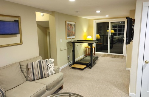 maple view house underwent a major whole house renovation and addition There is a large kitchen with a 10' island, and ample dining for everyone. Our house offers 5.5 bathrooms, 9 bedrooms, 4 living rooms, 3 fireplaces, 4 flat screen TVs, and a huge game room with a pool table, ping pong, air hockey, foosball, boss toss, darts and a poker table, as well as a sauna and bar area. Our high speed wifi, walking treadmill, and a desk area are great for getting a little work done.