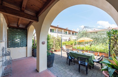 indulge in a romantic getaway at this rustic terraced house with a balcony, a private garden and an outside dining area in salo!